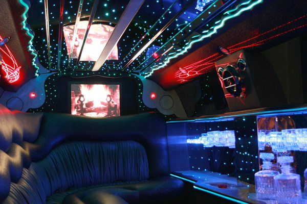 This limo can accommodate up to 10 guests. This stretch limousine is a special edition Tuxedo-style with laser lighting, strobes, intricate fiber optics and an elaborate refreshment bar. A unique experience indeed!
