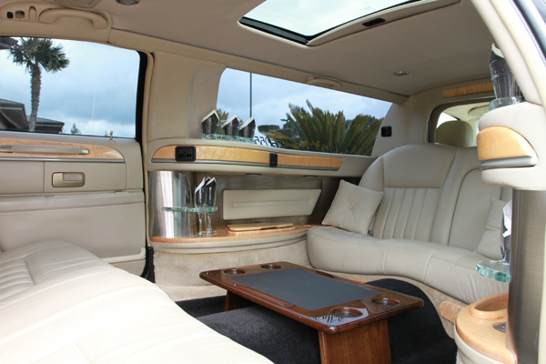 This stretch limo can accommodate up to 6 guests. This traditional stretch limousine has Bluetooth audio, a well-stocked refreshment bar, flat screen DVD player, and a state of the art fiber optic interior that will accommodate any occasion!