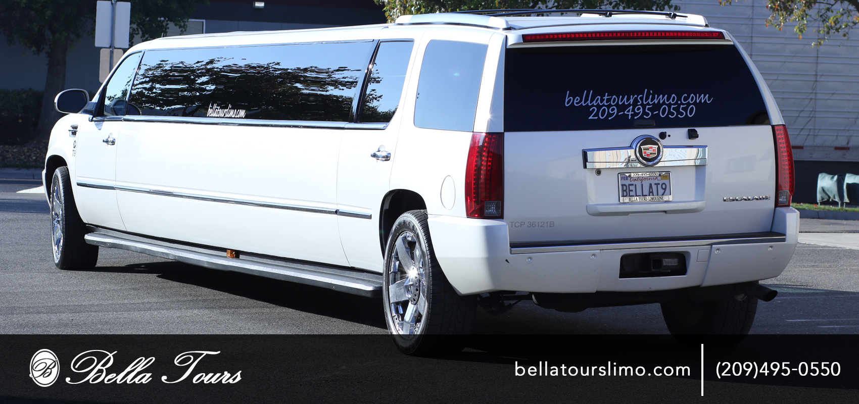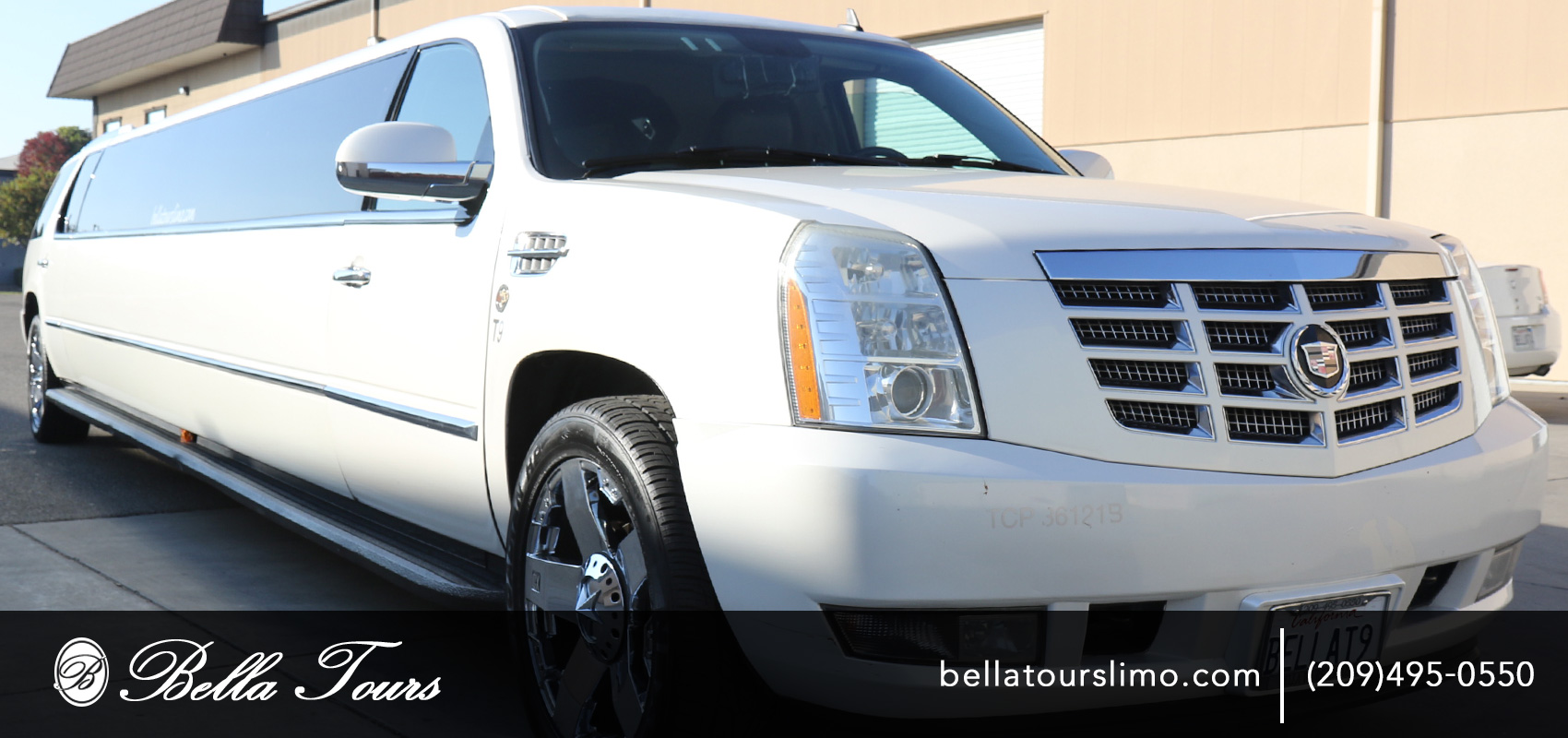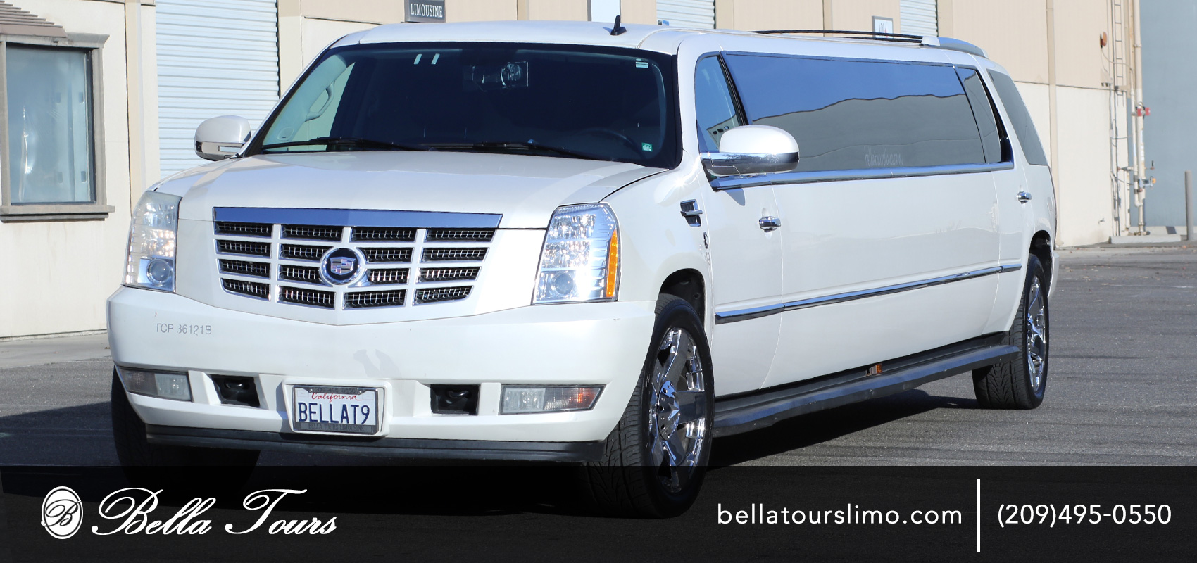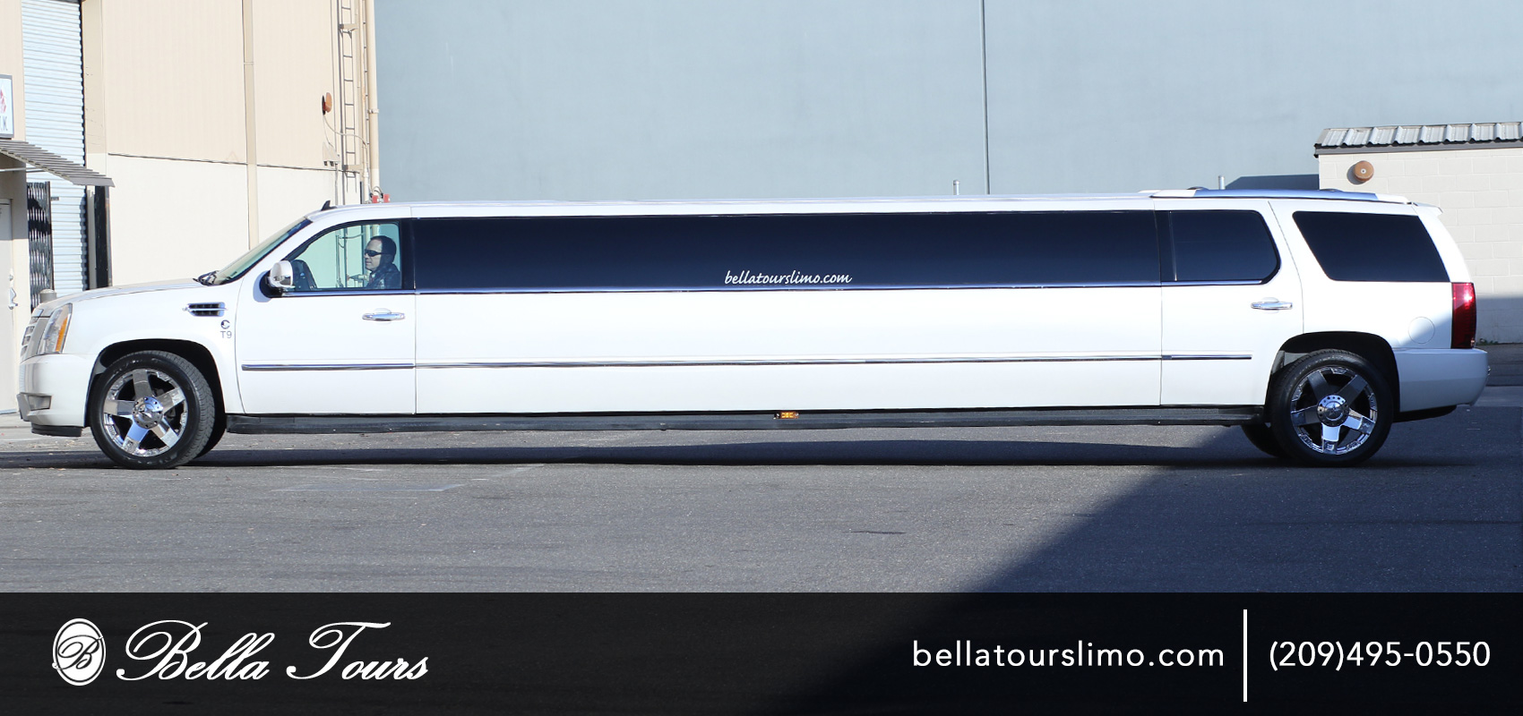 The ultimate in a luxurious limousine experience…the name says it all! This white pearl colored Escalade literally glistens in the night and seats up to 18 guests, comes fully loaded with fiber optic laser lighting, three flat screen DVD players, a digital state of the art sound system with Bluetooth audio, and two refreshment bars.